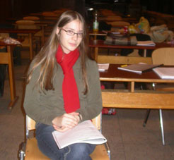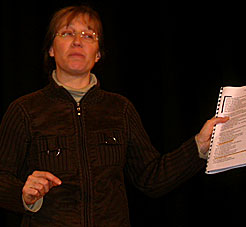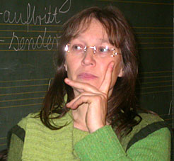 ist die weibliche Protagonistin des Ensembles. Im feministischen All-Girl-Ensemble in Köln hat sie illustre Rollen wie den "Shylock" (bzw. die "Sheila") gespielt, die "Heilige Johanna" sowohl von "Orleans" als auch die "der Schlachthöfe". Bei uns feierte sie als "Romeo" ihren bislang größten Erfolg und ist in "Shakespeare Reloaded" u.a. als "Laertes", als "Macbeth" und als "Macbeth-Hexe" zu sehen - und auch als "Hamlet", wenn sie sich durchsetzen kann... Ihr Credo lautet: "Mit Disziplin, Fleiß und Ehrgeiz kann man alles schaffen!"
